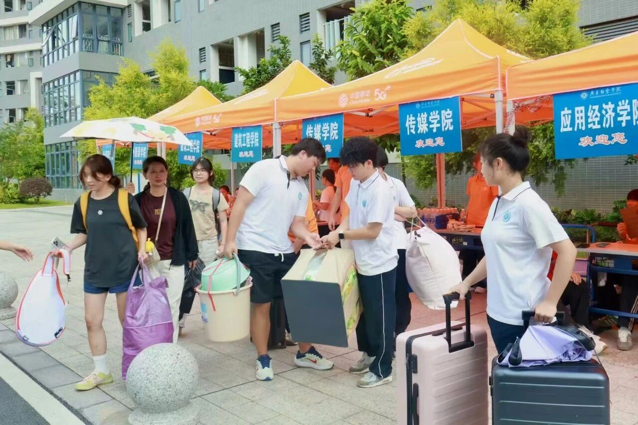 在人群中,一抹抹忙碌的身影格外亮眼。他们是来自传媒学院的志愿者们,是新生们入学路上温暖的依靠。从校门口到宿舍楼,志愿者们不辞辛劳地帮助新生搬运行李,汗水浸湿了衣衫,脸上却始终洋溢着灿烂的笑容。他们为新生们指引路线、介绍校园,为新同学们的到来保驾护航,让初来乍到的陌生感瞬间化作了满满的归属感。