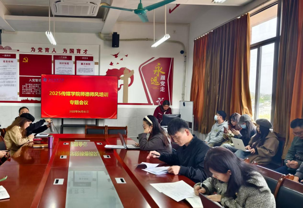 为进一步贯彻落实新时代高校教师职业行为准则,强化师德师风建设,提升教师队伍思想政治素质和职业道德水平,2025年4月1日下午2:30,传媒学院全体教职员工在博艺楼307室开展了师德师风培训专题会议,会议由传媒学院党总支朱玲书记主持。