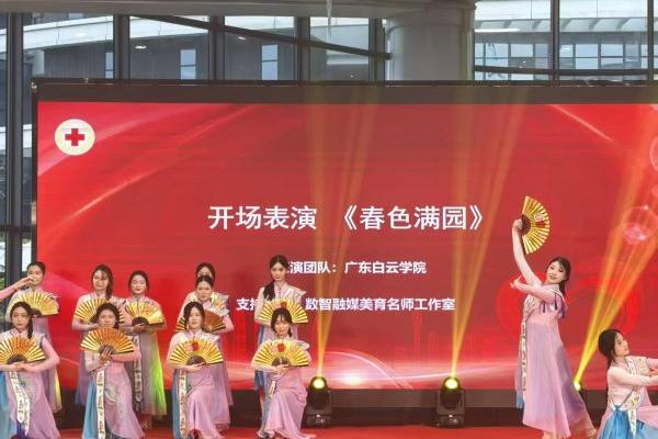 2025年4月25日,广东省红十字会“粤爱粤红·善行致远”2025年度人道公益日筹资动员会在中国南方航空公司培训中心会场举行。应主办方广东省红十字会邀请,广东白云学院数智融媒美育名师工作室成员曹可环副教授、樊容博士及辅导员张田老师带领学生舞蹈队参加此次公益盛会,为活动献上精彩的文艺表演。